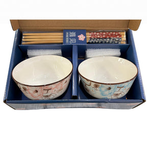 Hana Flower Double Rice Set of 10oz 4.5"D Bowl with Chopsticks Gift Set