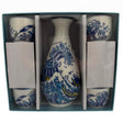 Great Wave Porcelain Glazed 10 oz Sake Bottle and 4 Cups Gift Set