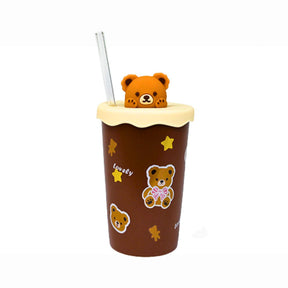 BROWN BEAR - 5.25"H CUP W/LID/STRAW 140Z